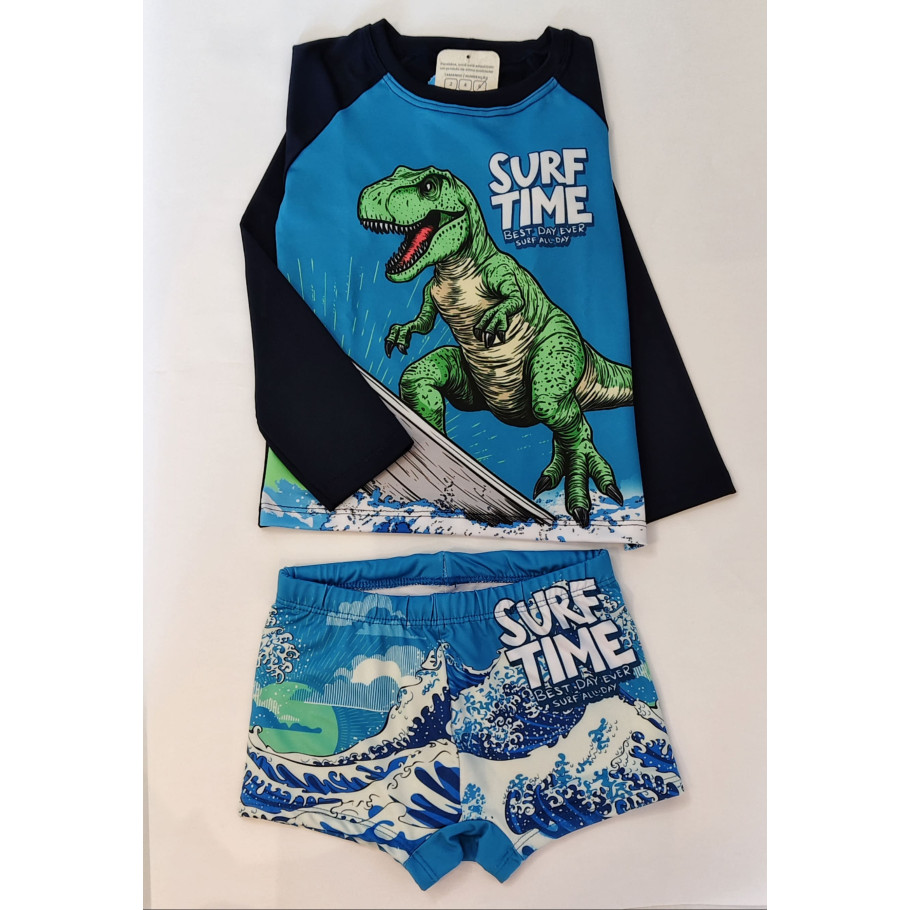 Conjunto Moda Praia infantojuvenil Dinossauro UV 50+