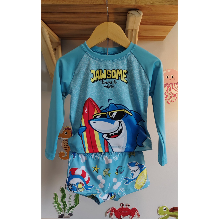O conjunto praia infantil verão em malha sublimada com Fator UV 50 e forro em poliamida é leve, confortável e cheio de estilo. Uma peça essencial para o verão, que une proteção solar, qualidade e beleza, garantindo segurança e liberdade para as crianças se divertirem com o conforto.