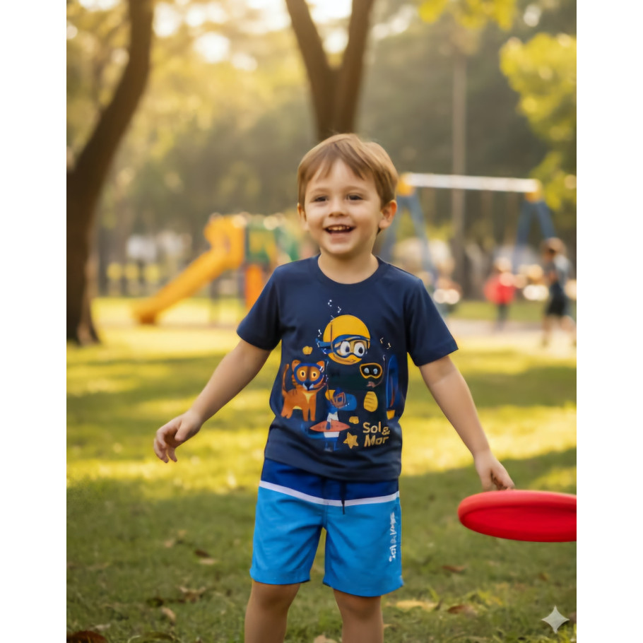 Perfeita para combinar com bermudas, shorts ou calças, essa camiseta é a escolha certa para os dias de sol e diversão!
